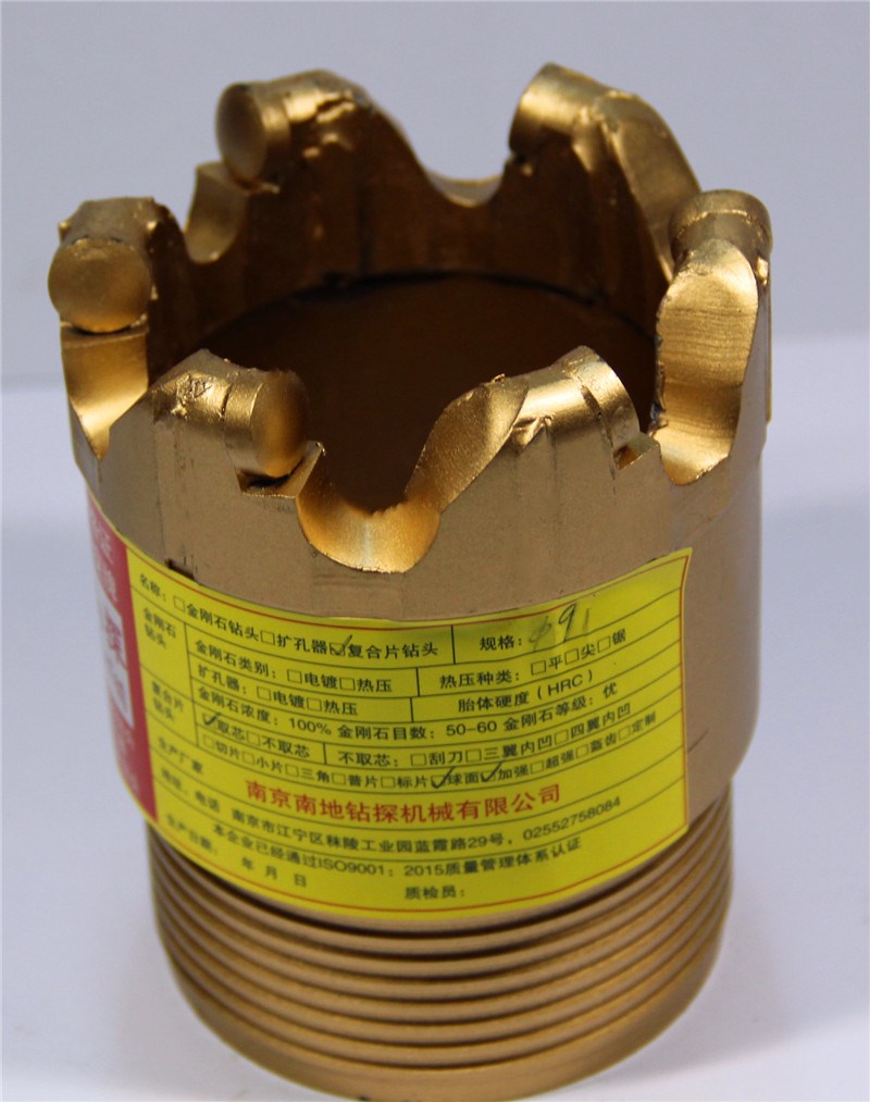 巖心管(單管)取芯復(fù)合片鉆頭按照復(fù)合片的種類又可以分:普通型復(fù)合片鉆頭、加強(qiáng)型復(fù)合片鉆頭、球面復(fù)合片鉆頭、超強(qiáng)型復(fù)合片鉆頭、盔齒型復(fù)合片鉆頭、切片復(fù)合片鉆頭、小牙復(fù)合片鉆頭、小牙螺紋復(fù)合片鉆頭、菠蘿復(fù)合片鉆頭、外肋骨復(fù)合片鉆頭、無(wú)內(nèi)徑跟管復(fù)合片鉆頭等許多種,以便于滿足不同地層、砂礫石、巖石的取芯需求。該種鉆頭穩(wěn)定性好,具有使用壽命長(zhǎng)、鉆進(jìn)效率高、低壓中速鉆進(jìn)、保徑效果好、使用范圍廣和具有優(yōu)越的性價(jià)比等特點(diǎn),可廣泛應(yīng)用于地質(zhì)勘探、煤田開(kāi)采、水利水電施工(水井開(kāi)發(fā))、地?zé)峥住⒐?、鐵路、建筑施工建設(shè)的巖石鉆進(jìn)及巖石抽心取樣驗(yàn)樁。