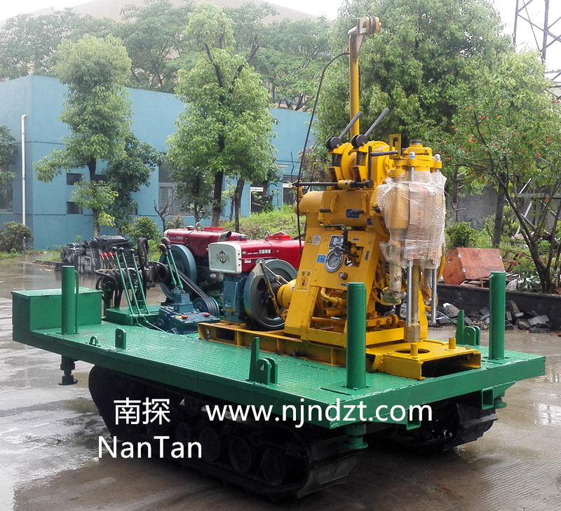 該履帶底盤(pán)承載重量達(dá)4T,可以裝載各種小型鉆機(jī),如:XY-1-1、XY-1、XY-1A、XY-1A(YJ)、XY-1A-4、XY-1A-5、XY-1B、XY-1B-1、XY-1B-2、XY-200、XY-200(YJ)、XY-200B、XY-200B-1、XY-200B-2、GXY-1系列、GXY-2Q、GXY-200B、GYQ-200、GYQ-200A、GK180、GXY-2K、GXY-2C等100-300米鉆機(jī),并可同時(shí)裝載BW160、BW160A、BW200或BW200A型泥漿泵,具有利用鉆機(jī)卷?yè)P(yáng)機(jī)起落鉆塔、行走方便等特點(diǎn),廣泛適用于公路、鐵路、水電、橋梁、壩基等的工程地質(zhì)勘察、地質(zhì)巖芯鉆探、物理勘察、小型灌漿孔、爆破孔、水井孔和空調(diào)孔的鉆進(jìn)。