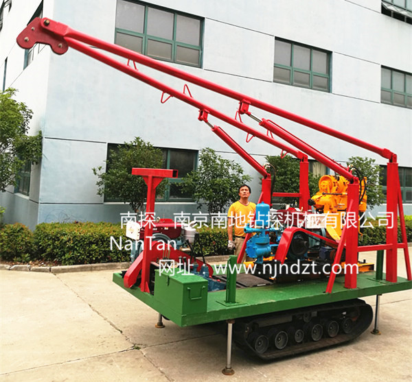一、適用范圍:該履帶底盤承載重量達(dá)4T,可以裝載各種小型鉆機(jī),如:XY-1-1、XY-1、XY-1A、XY-1A(YJ)、XY-1A-4、XY-1A-5、XY-1B、XY-200、XY-200(YJ)、XY-200-1、XY-200-2、XY-200A、XY-200A(YJ)、XY-200A-1、XY-200A-2、XY-200B、GXY-1、GXY-1A、GXY-1B、GXY-1C、GXY-2K、GXY-2Q、GXY-200B、GYQ-200、GYQ-200A、GXY-2C、GK180、KD100-4、KD150等,并可同時(shí)裝載BW160、BW160A、BW200或BW200A型泥漿泵,具有液壓自動(dòng)起落鉆塔、行走方便等特點(diǎn),廣泛適用于公路、鐵路、水電、橋梁、壩基等的工程地質(zhì)勘察、地質(zhì)巖芯鉆探、物理勘察、小型灌漿孔、爆破孔、水井孔和空調(diào)孔的鉆進(jìn)??稍诤?、河灘、沙地、水田等惡劣環(huán)境開展靜探作業(yè),結(jié)冰道路仍可行走。